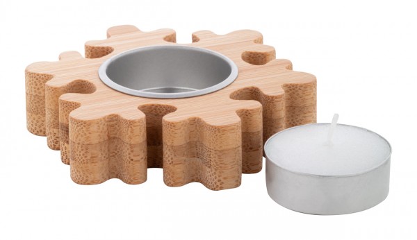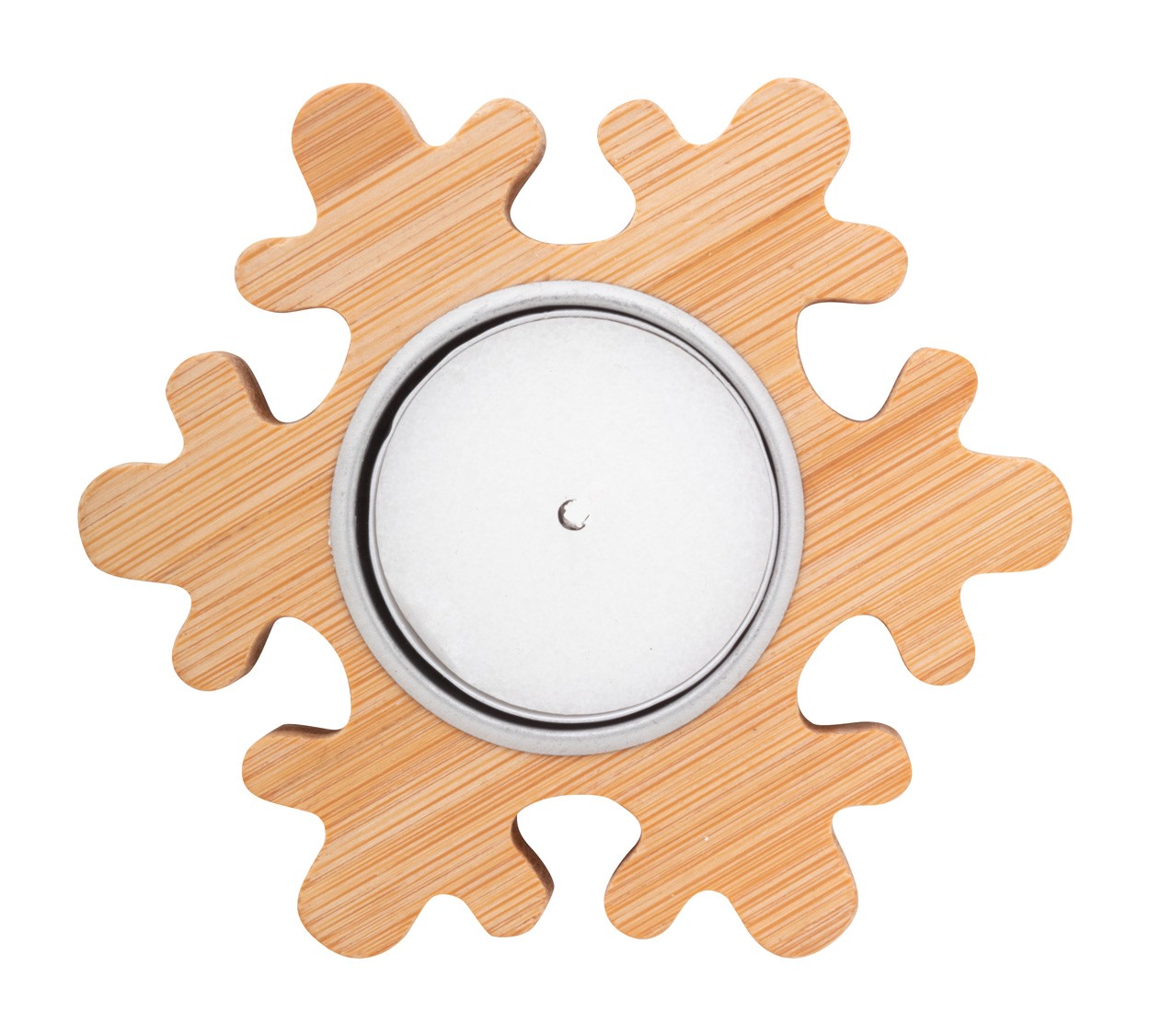 Suport pentru lumânări, de Crăciun, din bambus, cu lumânare din ceară cu parfum de vanilie. Timp de ardere: 4 ore. În cutie de hârtie kraft.