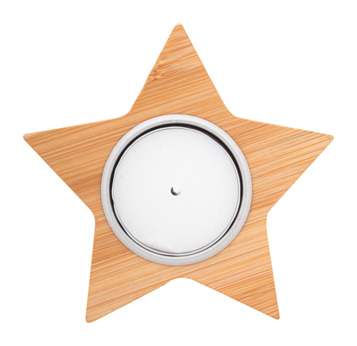 Suport pentru lumânări, de Crăciun, din bambus, cu lumânare din ceară cu parfum de vanilie. Timp de ardere: 4 ore. În cutie de hârtie kraft.