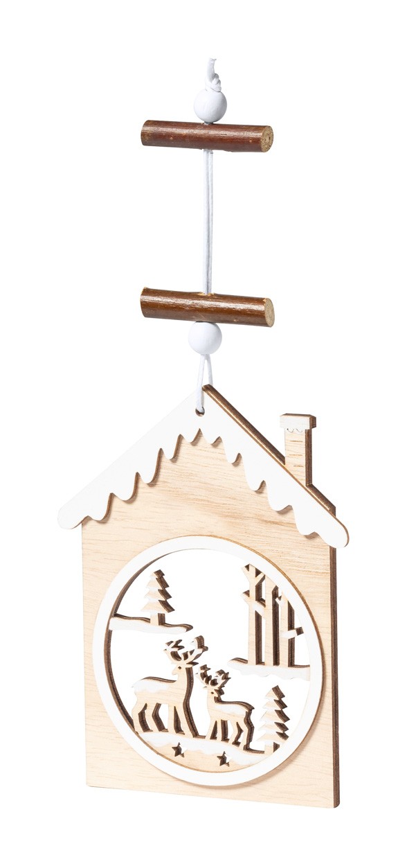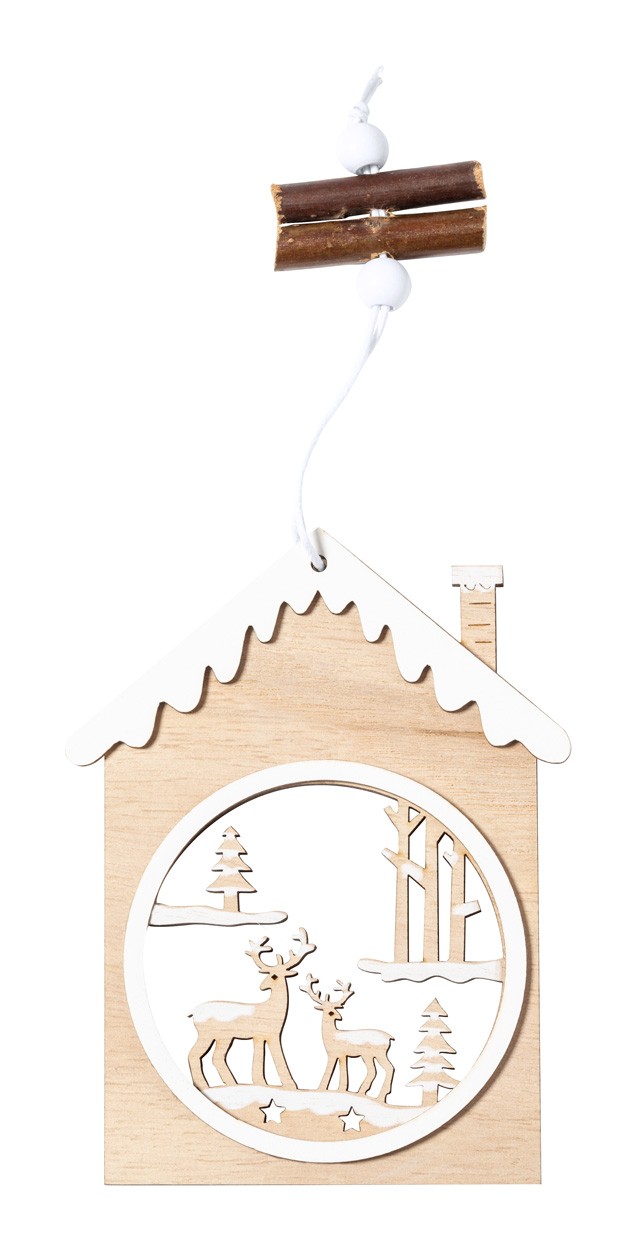 Ornament pentru brad de Crăciun, din lemn cu sfoară deocrată.