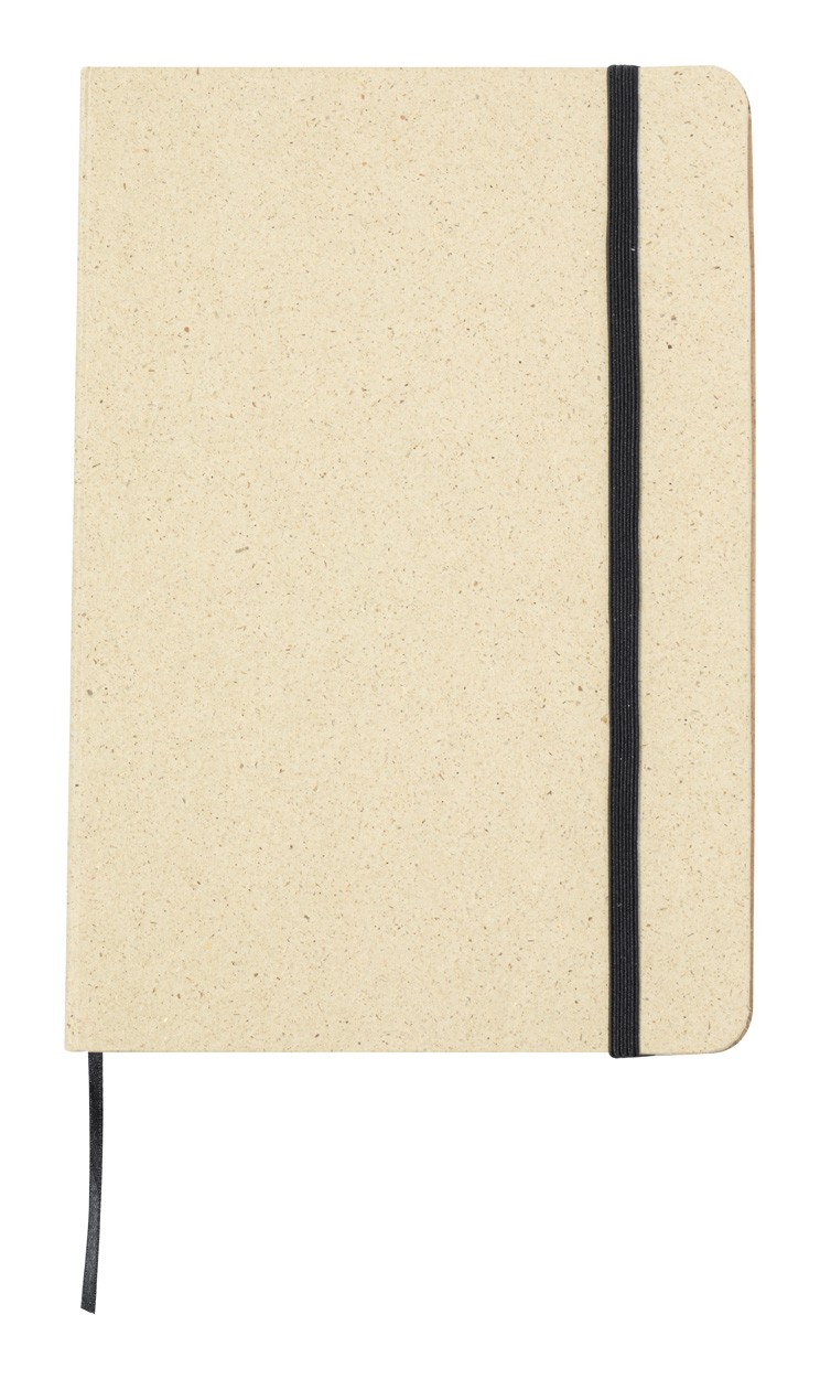 Caiet de hârtie din iarbă, cu 80 de foi dictando. Cu marcaj și bandă de cauciuc. Dimensiune A5.