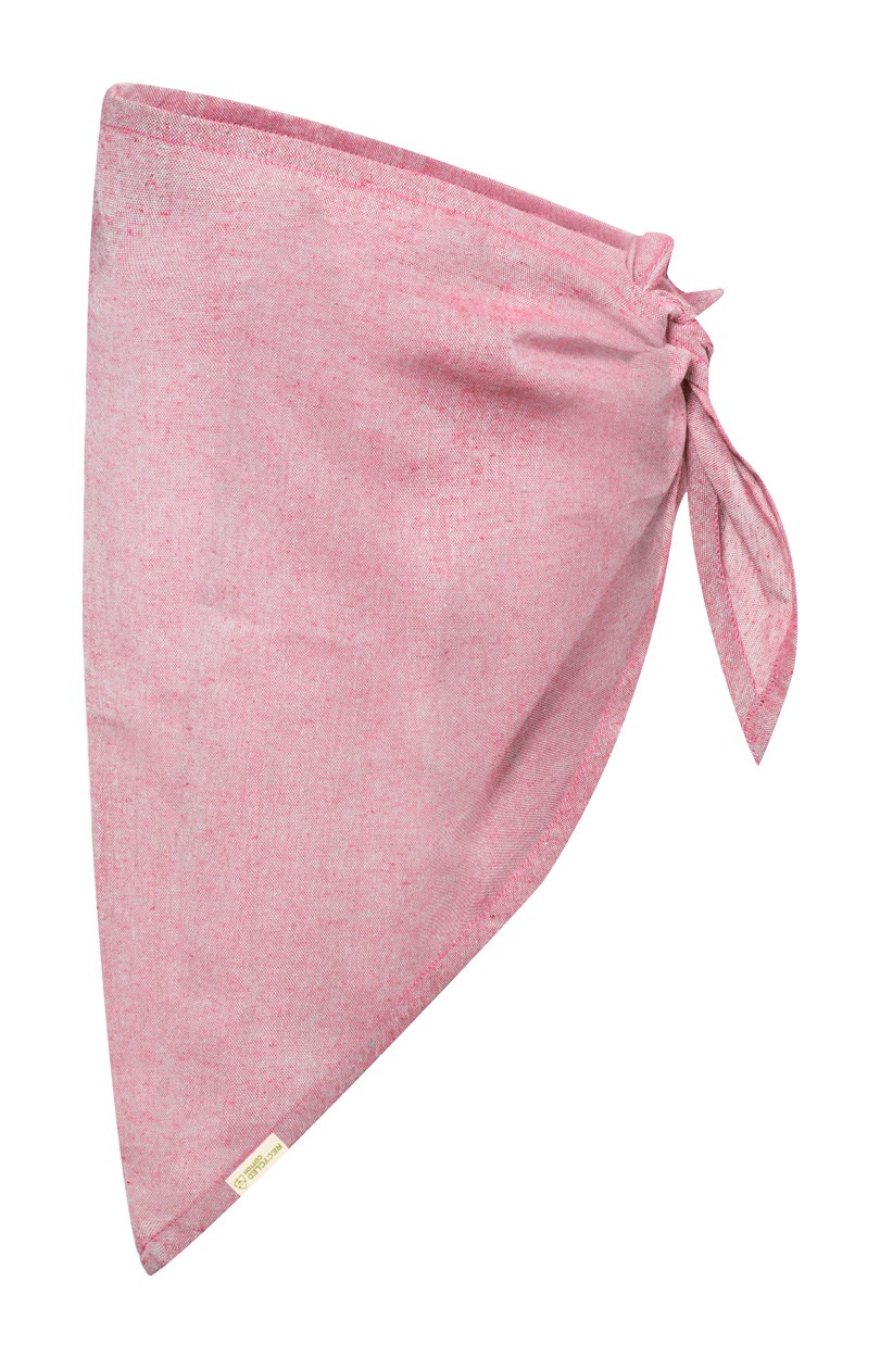 Bandană din bumbac reciclat, cu etichetă distinctivă din bumbac reciclat.