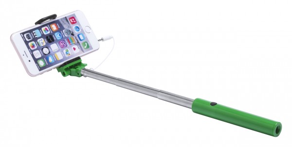 Selfie stick din oțel inoxidabil, mâner din plastic, buton de declanșare, cablu Jack 3,5 mm, cu suport universal pentru telefon mobil.