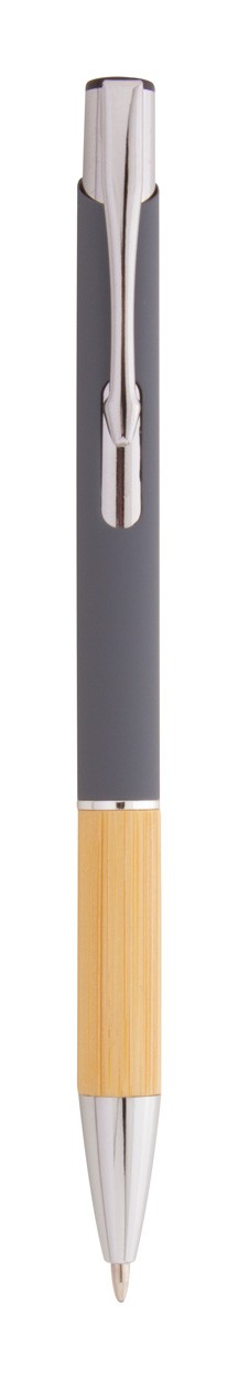 Pix din aluminiu, cu corp din bambus, finisaj cauciucat și mină albastră. Cu acoperire specială pentru gravarea laser în oglindă.