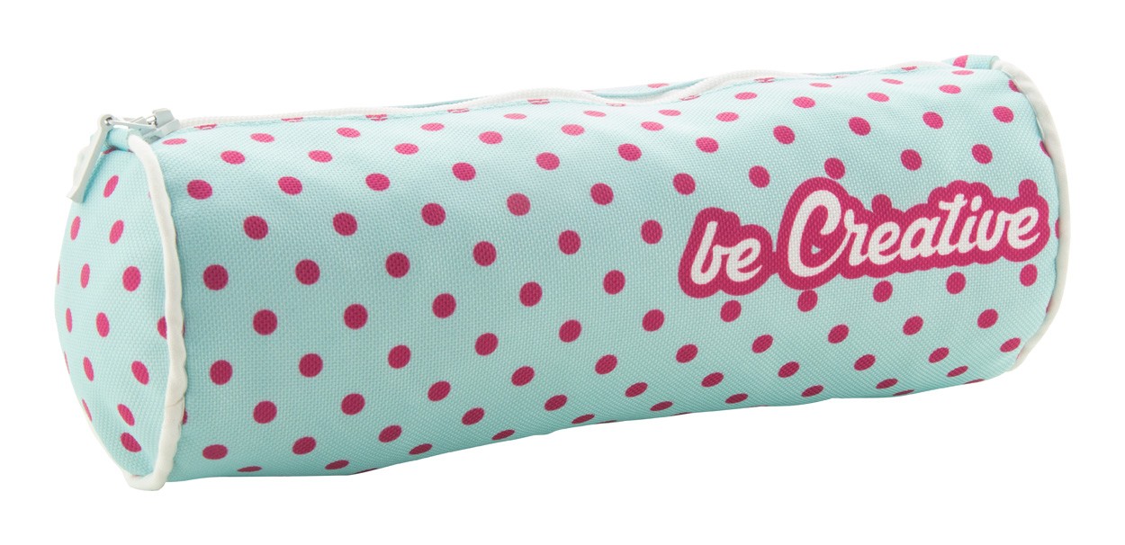 Carcasă de stilou rotundă, personalizată, din poliester cu fermoar. Cu grafică tipărită pe toată sublimarea. MOQ: 50 buc.
