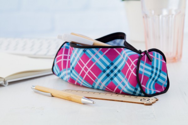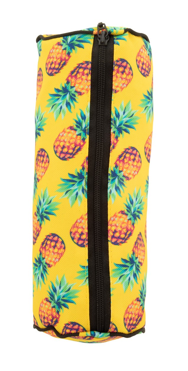 Carcasă de stilou rotundă, personalizată, din poliester cu fermoar. Cu grafică tipărită pe toată sublimarea. MOQ: 50 buc.