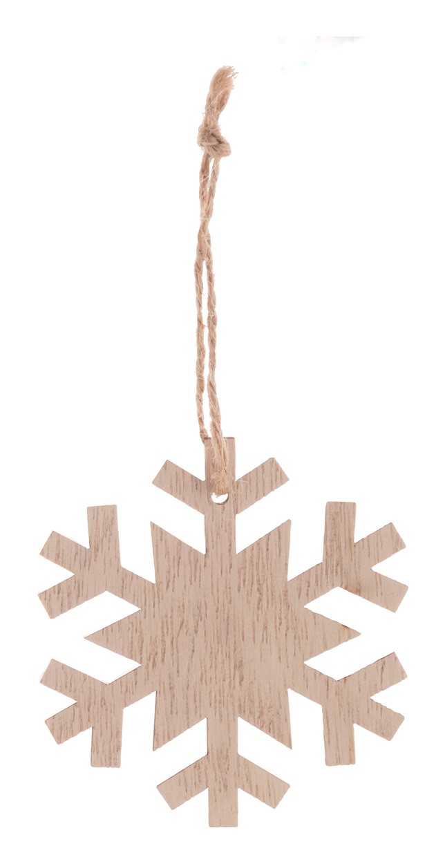 Ornament de pom de Crăciun, din lemn, cu șnur de cânepă.
