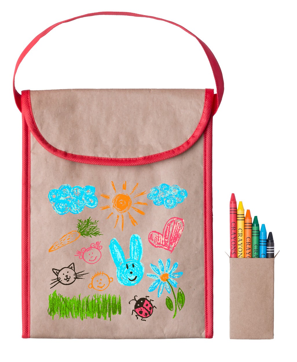 Geantă termoizolantă pentru copii, din hârtie, căptușeală din aluminiu, mâner colorat.
