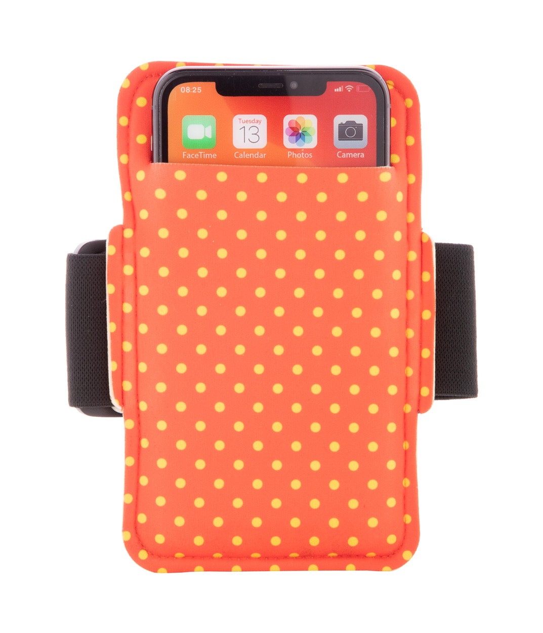 Husă pentru braț, pentru telefon mobil, realizată la comandă, din neopren. Se potrivește telefoanelor mobile cu dimensiunea ecranului de până la 6 inchi. Cu grafică imprimată prin sublimare. MOQ: 50 buc.