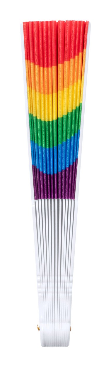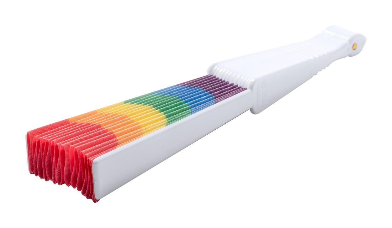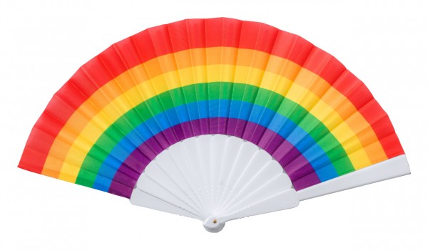 Evantai de mână, din poliester RPET, în culorile curcubeului.