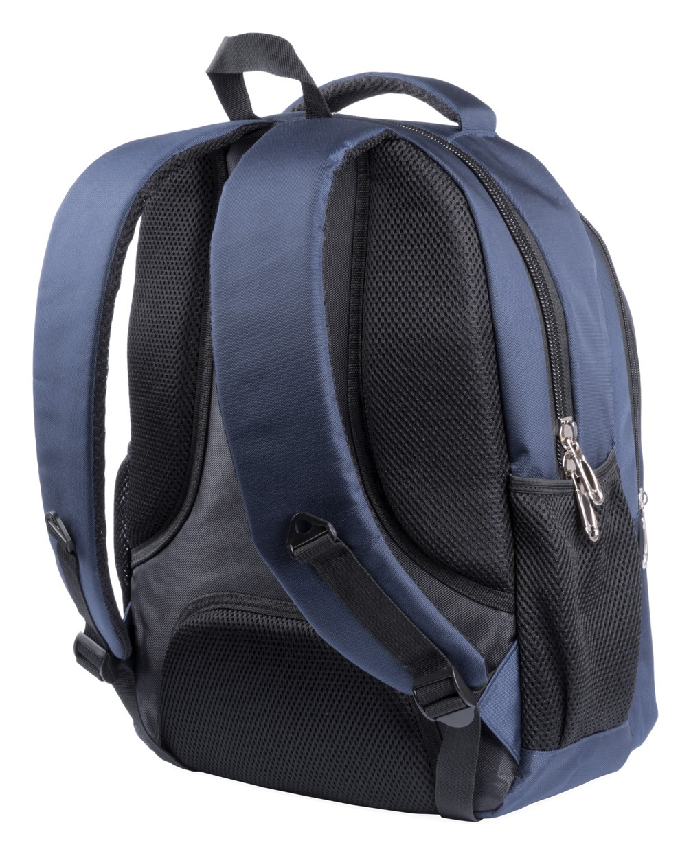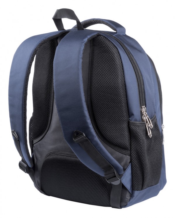 Rucsac cu mai multe compartimente cu fermoar. Compartiment pentru laptop (15"), bretele și spate căptușit. Material: nylon 600D.