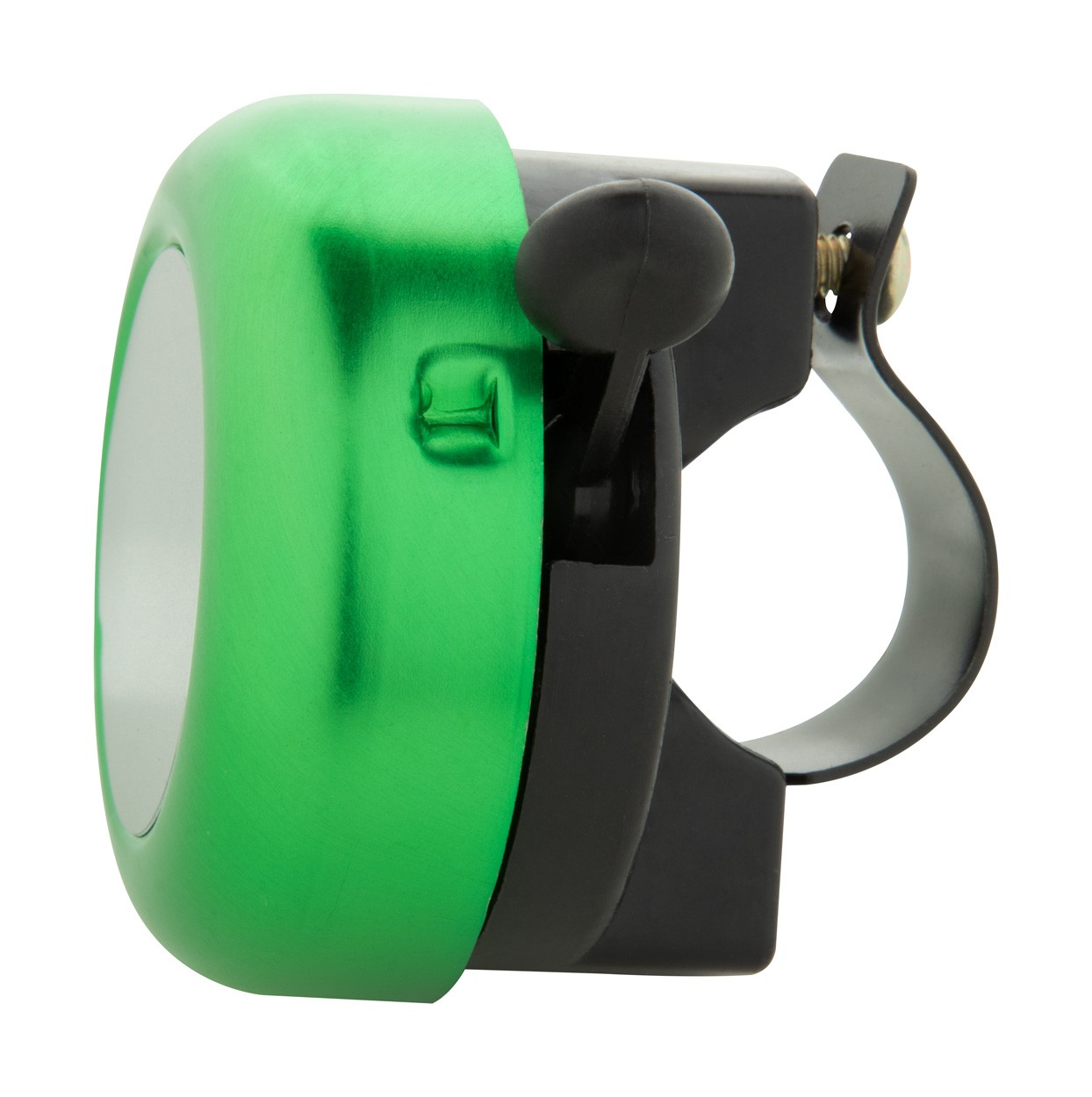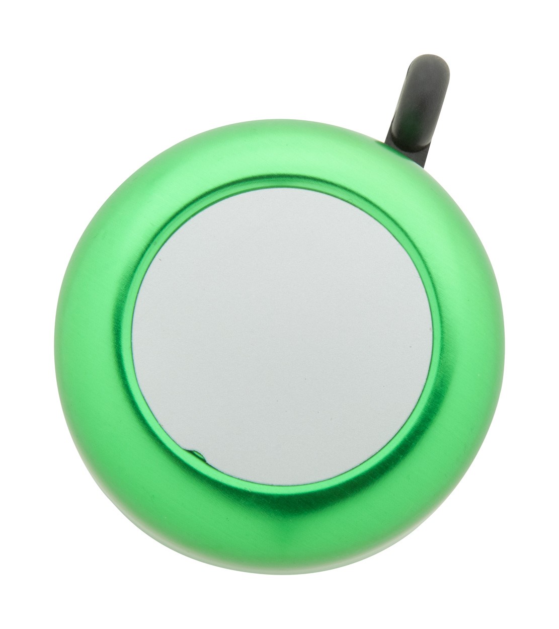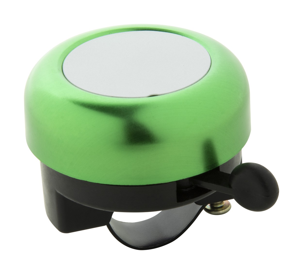 Sonerie bicicletă din aluminiu colorat, cu suprafață argintie pentru personalizare.