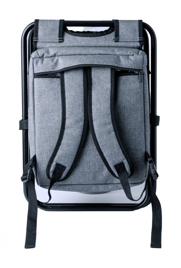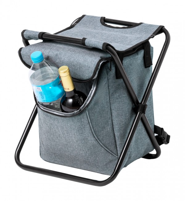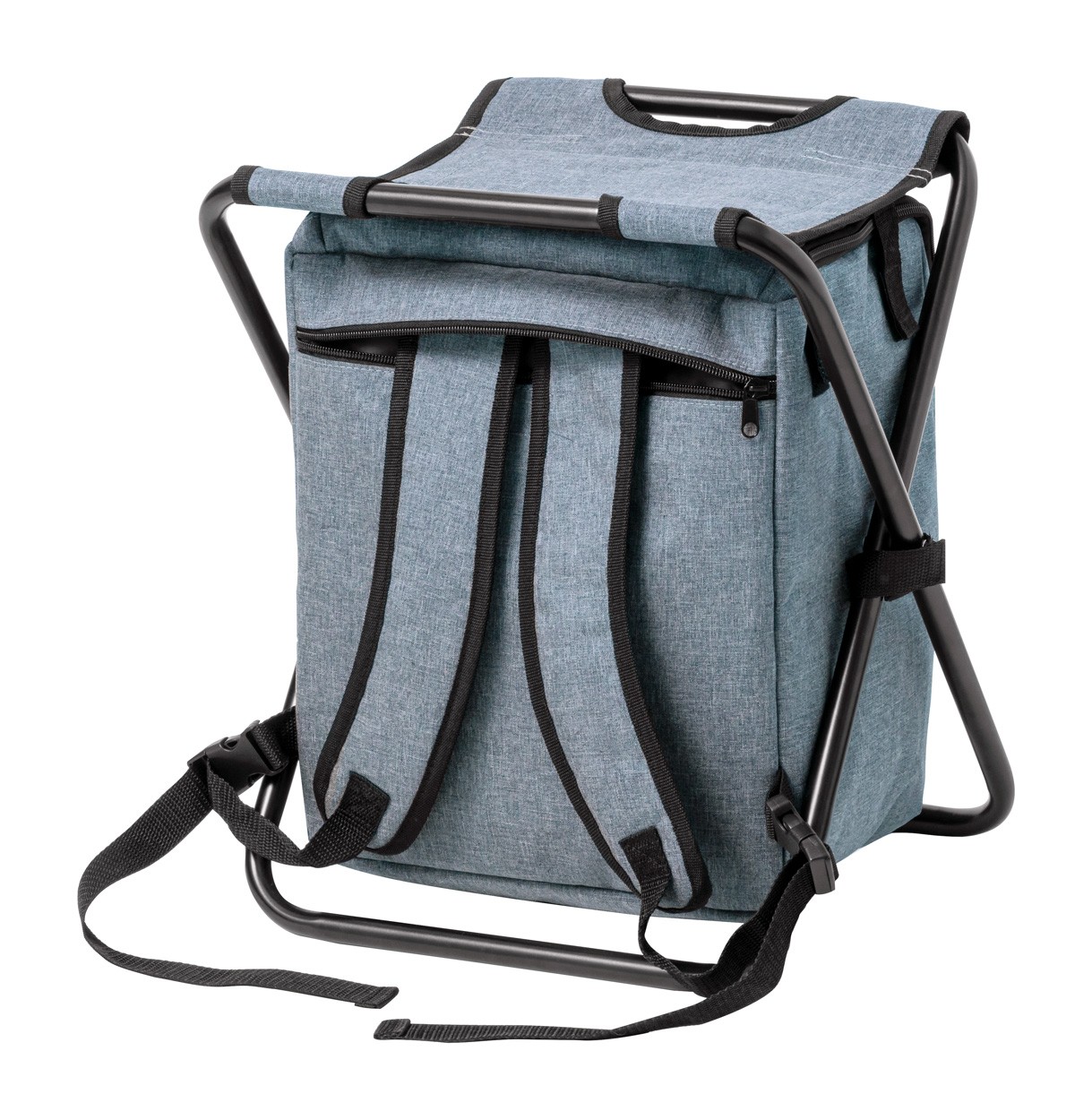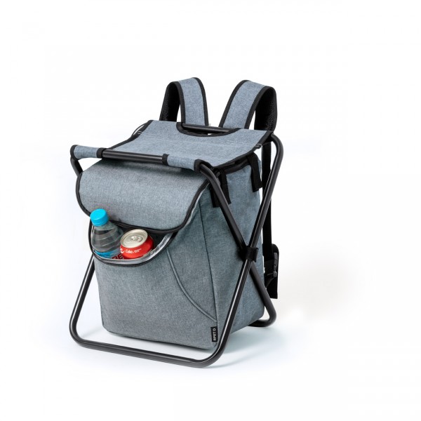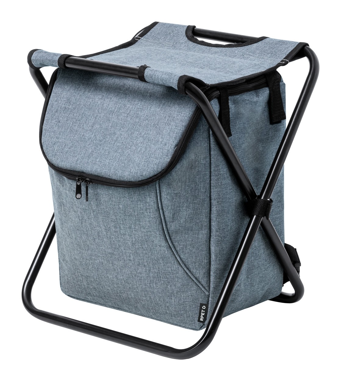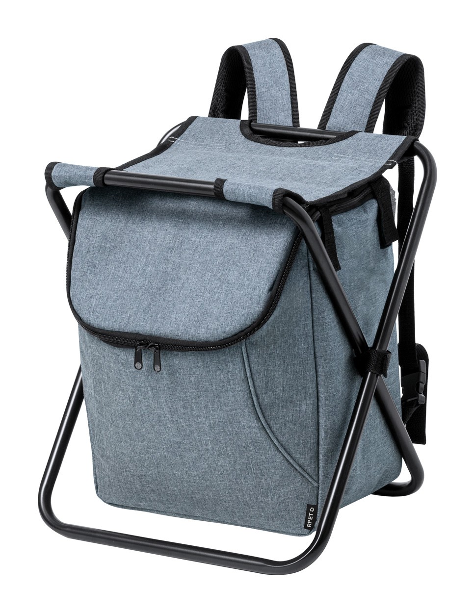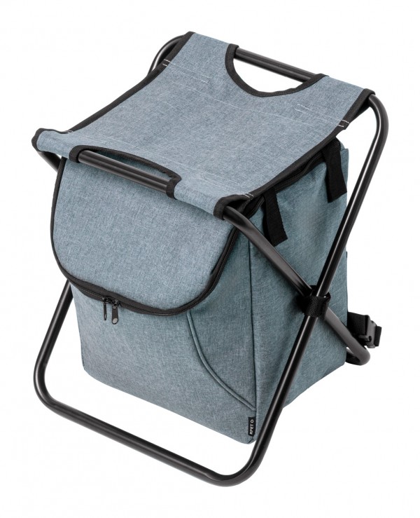 Rucsac frigorific multifuncțional, RPET cu compartimente cu fermoar, căptușeală PEVA și bretele de umăr reglabile. Cu scaun integrat, pliabil, cu rame din aluminiu. Cu etichetă distinctivă RPET. Poliester 600D RPET.