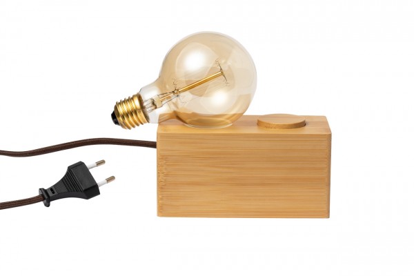 Lampă de birou, din bambus, cu bec de 40W și luminozitate reglabilă și bază anti-alunecare.