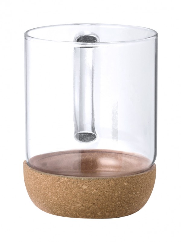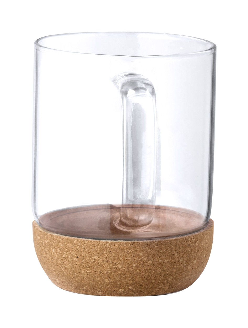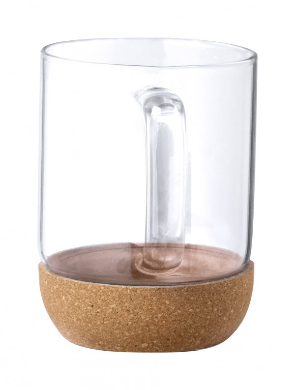Cană din sticlă borosilicată, cu bază de plută naturală, 450 ml. În cutie de hârtie kraft.