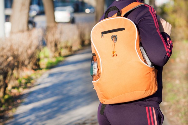 Rucsac din poliester 600D, bretele reglabile, buzunare laterale cu plasă, buzunar cu fermoar pentru telefon mobil.