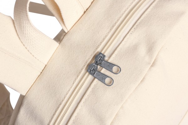 Rucsac din bumbac organic, cu compartiment principal cu fermoar și buzunar frontal, curea de transport și bretele de umăr reglabile. 100% bumbac organic cu etichetă distinctivă de bumbac organic.