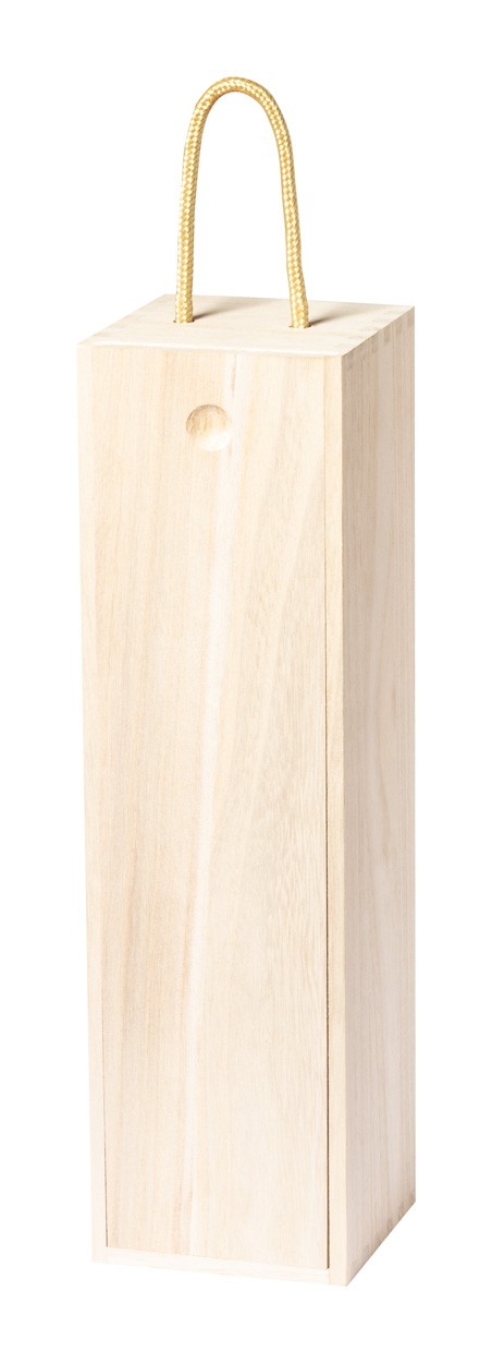 Cutie cadou, din lemn, pentru 1 sticlă de vin, cu mâner din șnur.