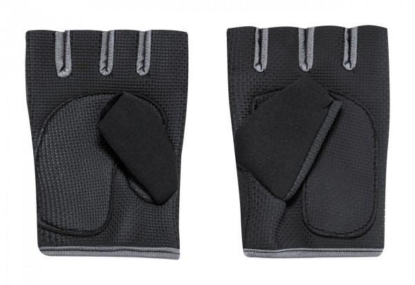 Mănuși sport, din poliester și neopren lycra, cu degete deschise și închidere cu velcro.