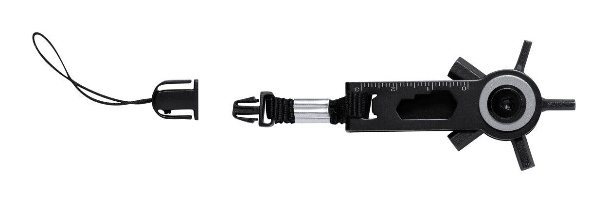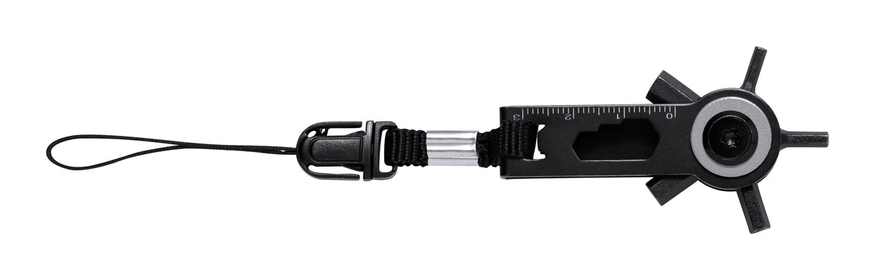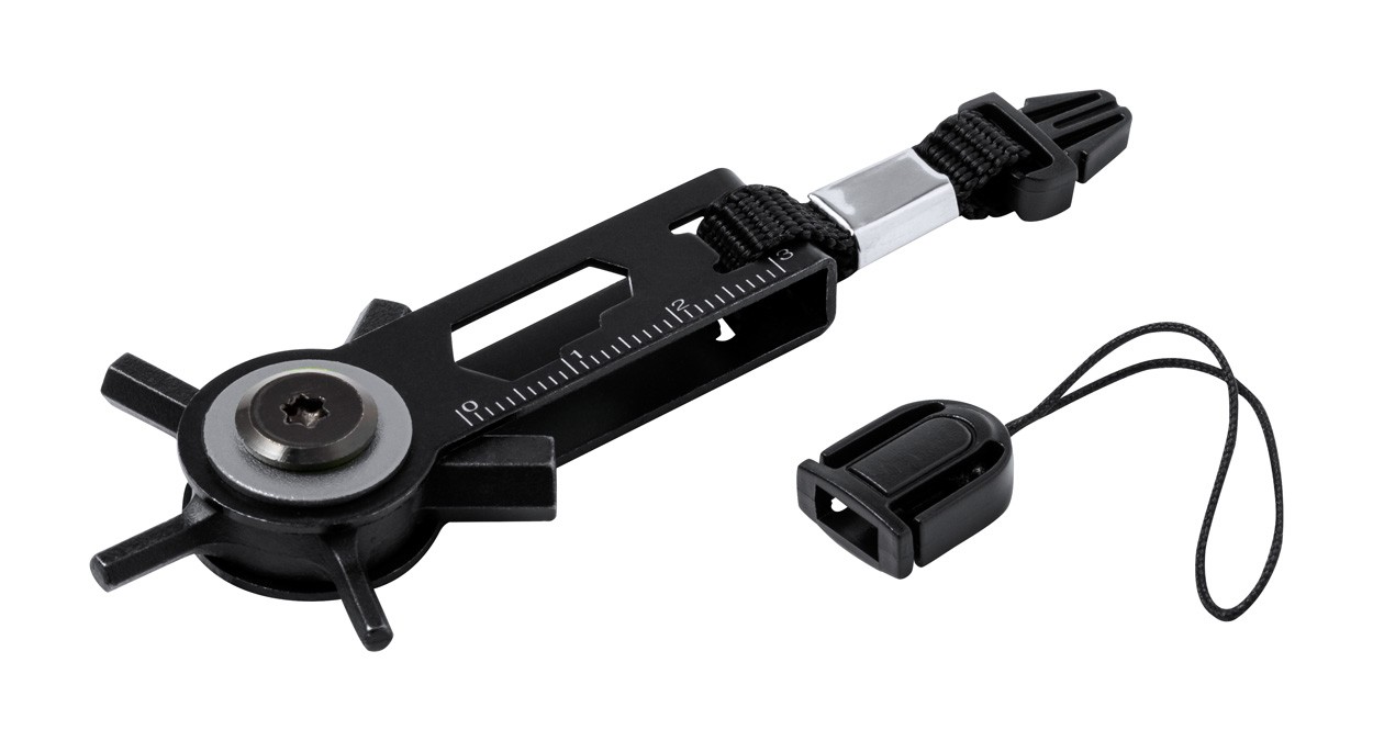 Unealtă multifuncțională din oțel inoxidabil, cu 10 funcții și curea de transport.