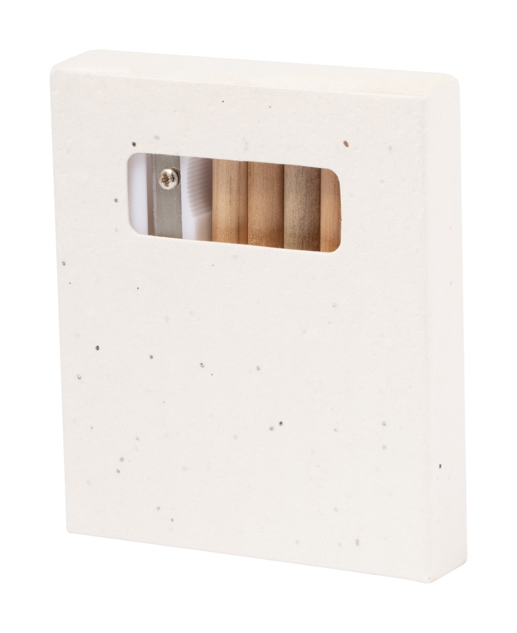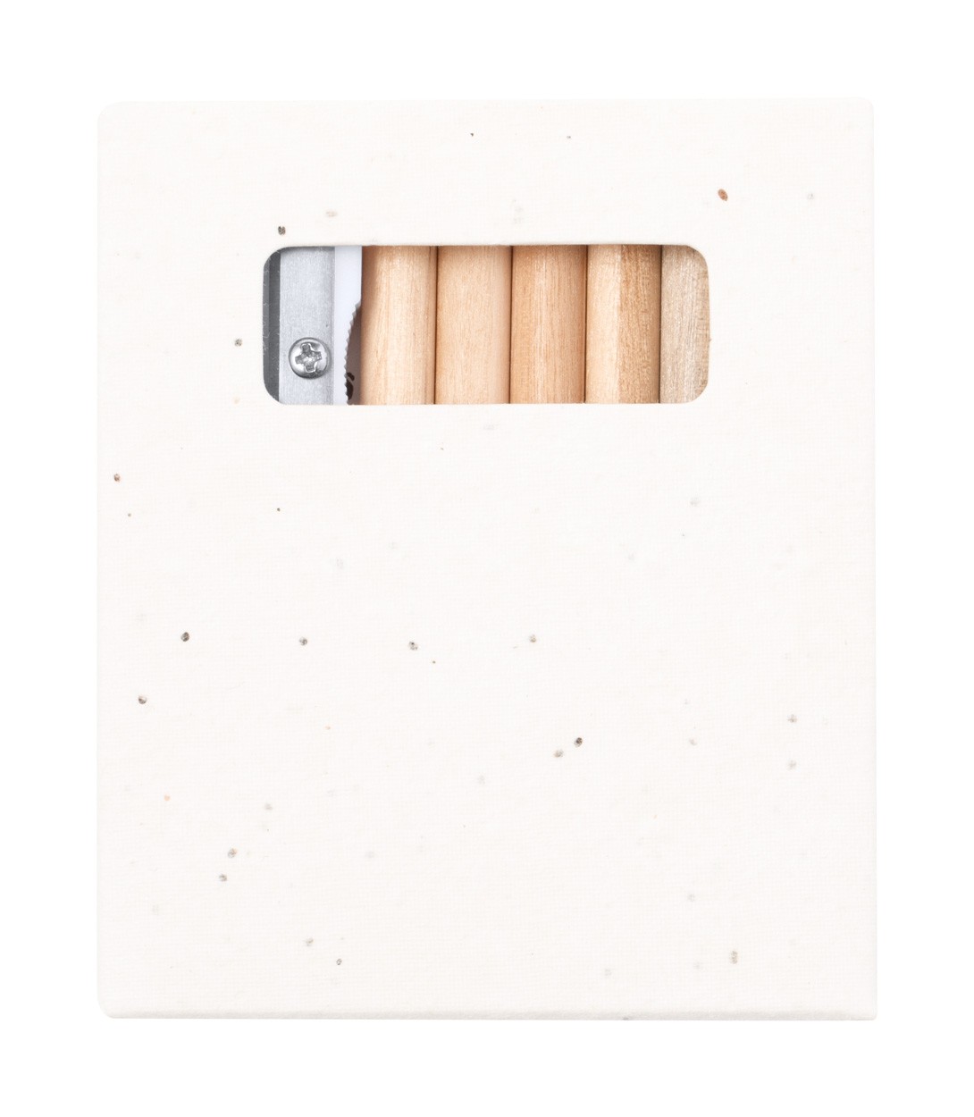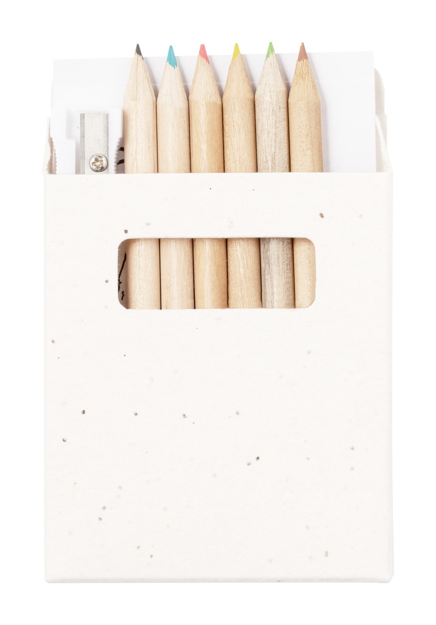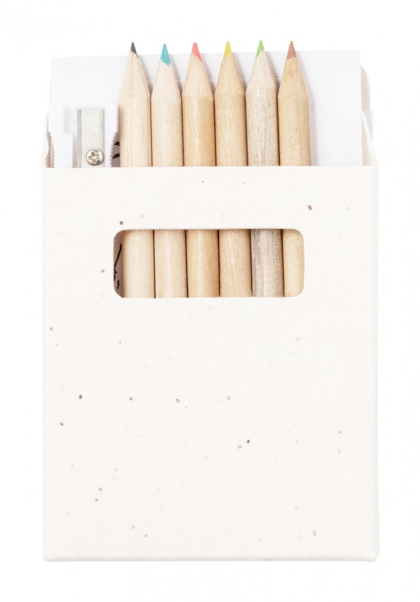 Set de colorat, în cutie de hârtie cu semințe. Include 6 creioane colorate din lemn, ascuțitoare și 20 de foi carte de colorat. Cutia de hârtie cu semințe conține semințe de petunia în culori asortate, care pot fi plantate după utilizare.