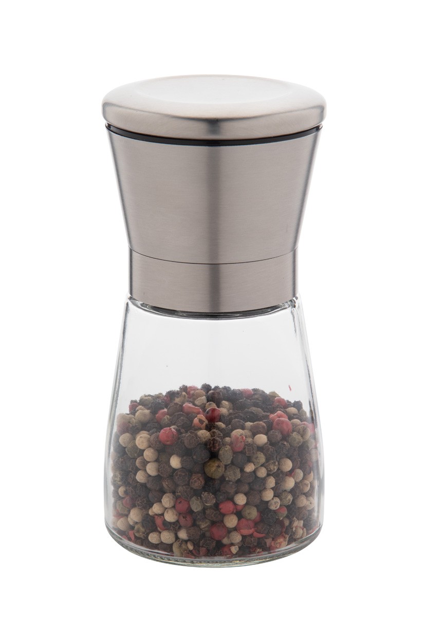 Râșniță sare și piper, manuală, din otel inoxidabil. cu mecanism ceramic și recipient din sticlă, 180 ml.