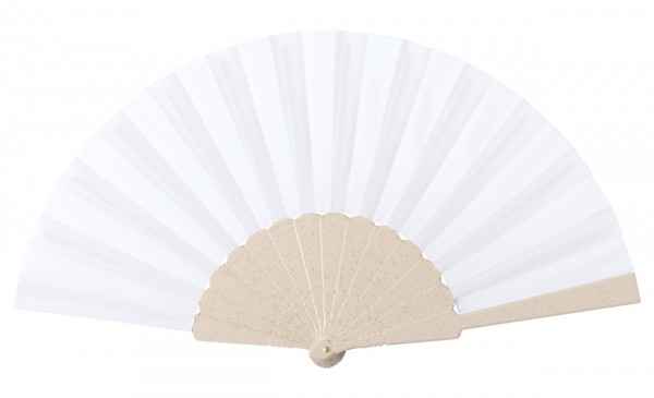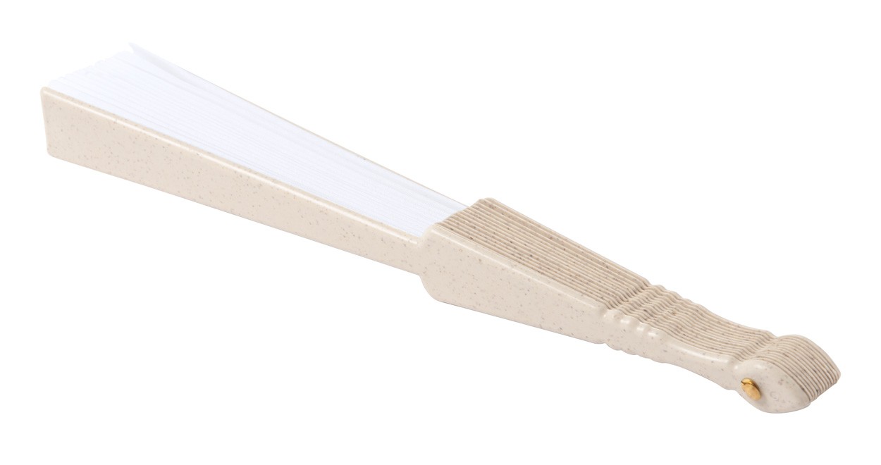 Evantai din poliester PET reciclat și plastic ecologic din fibră de bambus. În cutie de hârtie kraft.