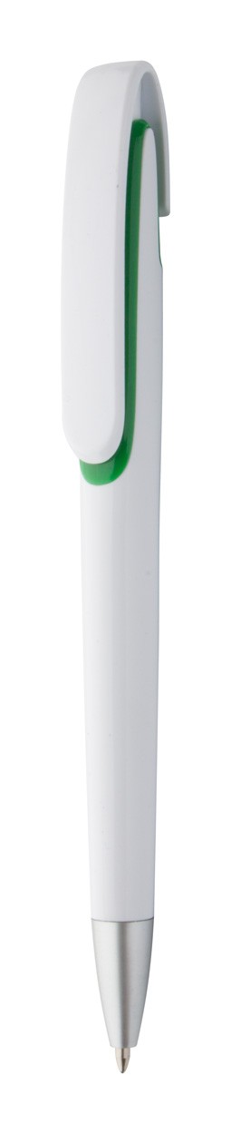 Pix din plastic, corp alb, vârf argintiu. Mină albastră.