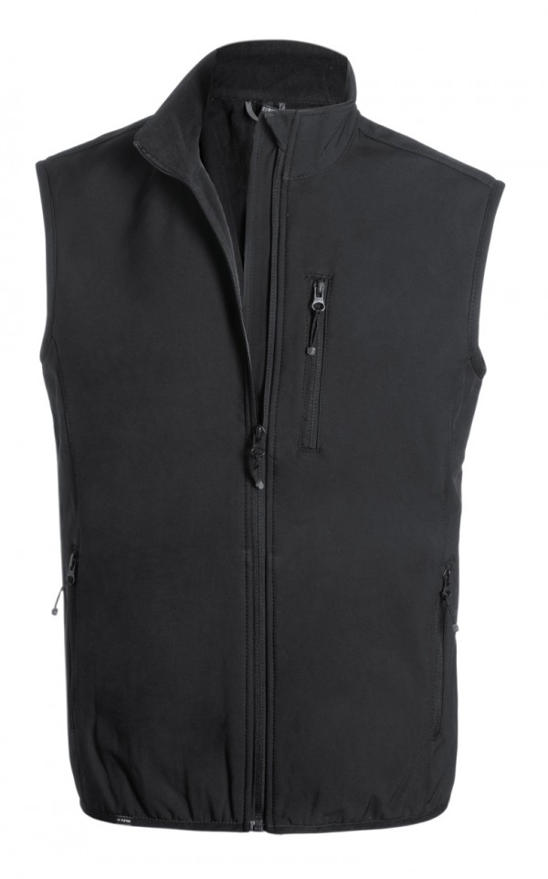 Vestă softshell RPET, cu fermoar, impermeabilă și rezistentă la vânt, cu buzunare pe piept și laterale. Exterior: 92% poliester RPET și 8% elastan. Interior: micro fleece din poliester 100% RPET. 300 g/m².