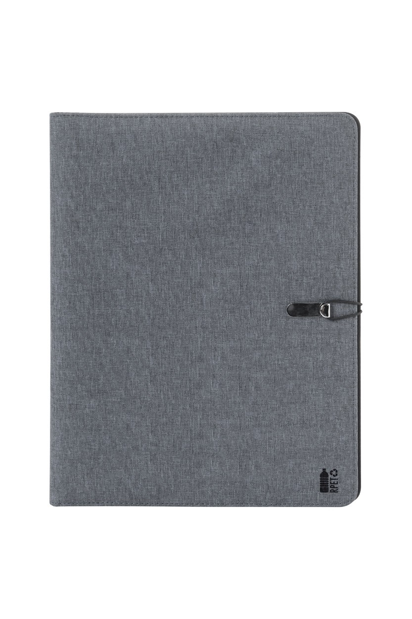 Dosar pentru documente, din poliester 300D RPET de dimensiune A4, cu blocnotes cu 25 de foi dictando și mai multe buzunare interioare pentru organizare.
