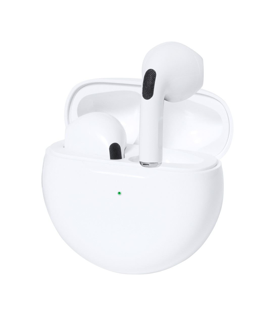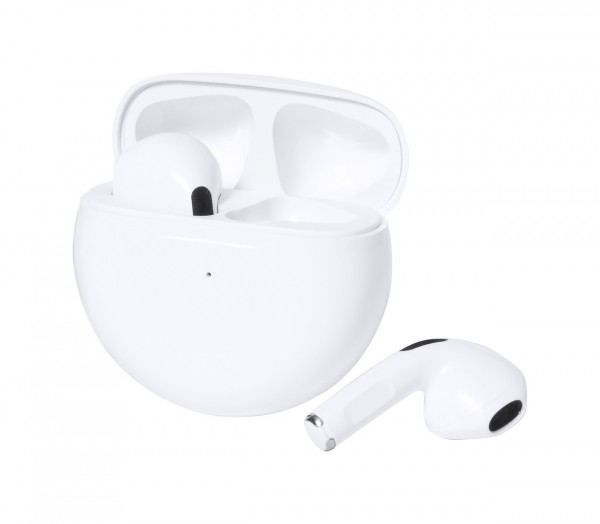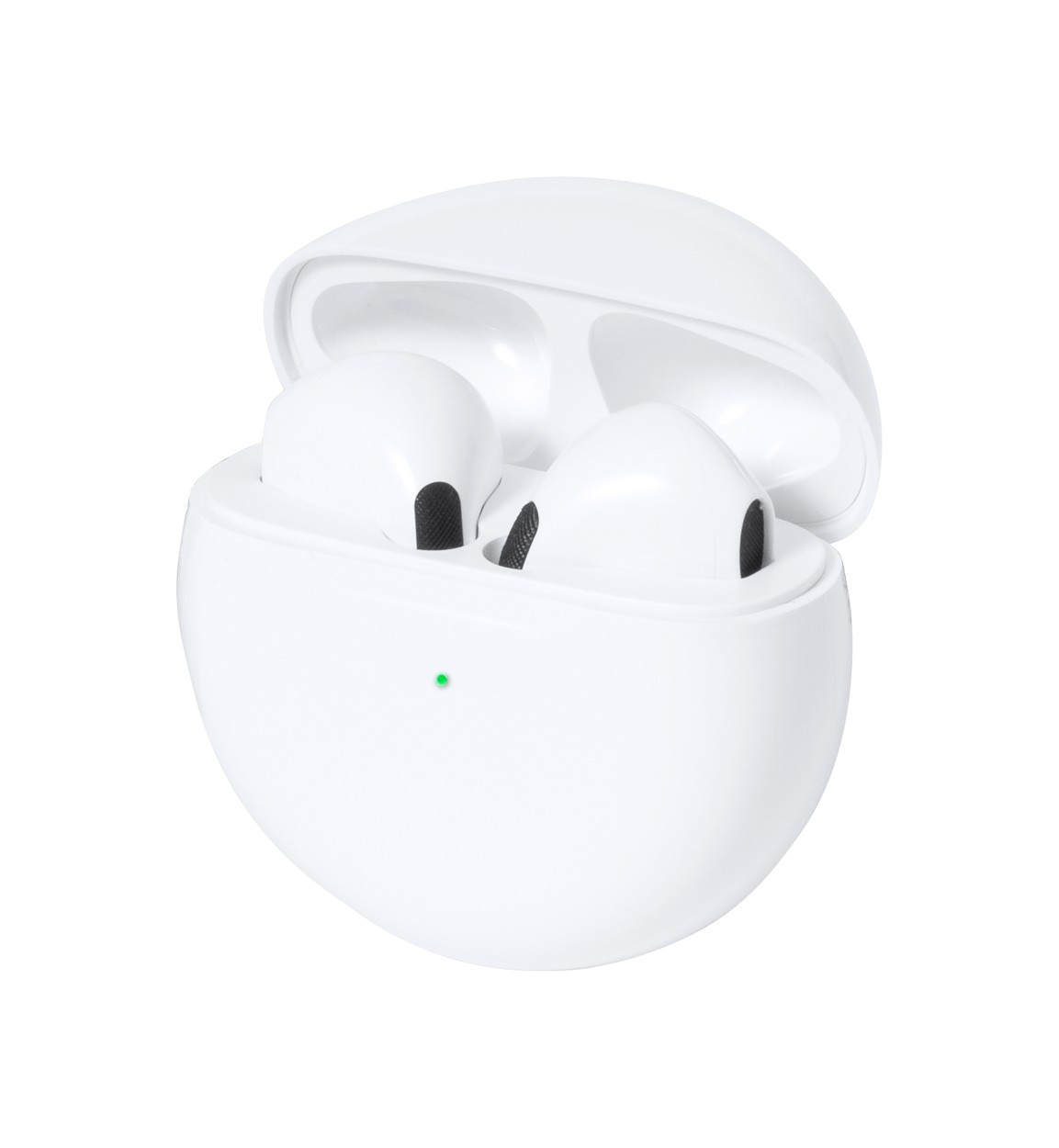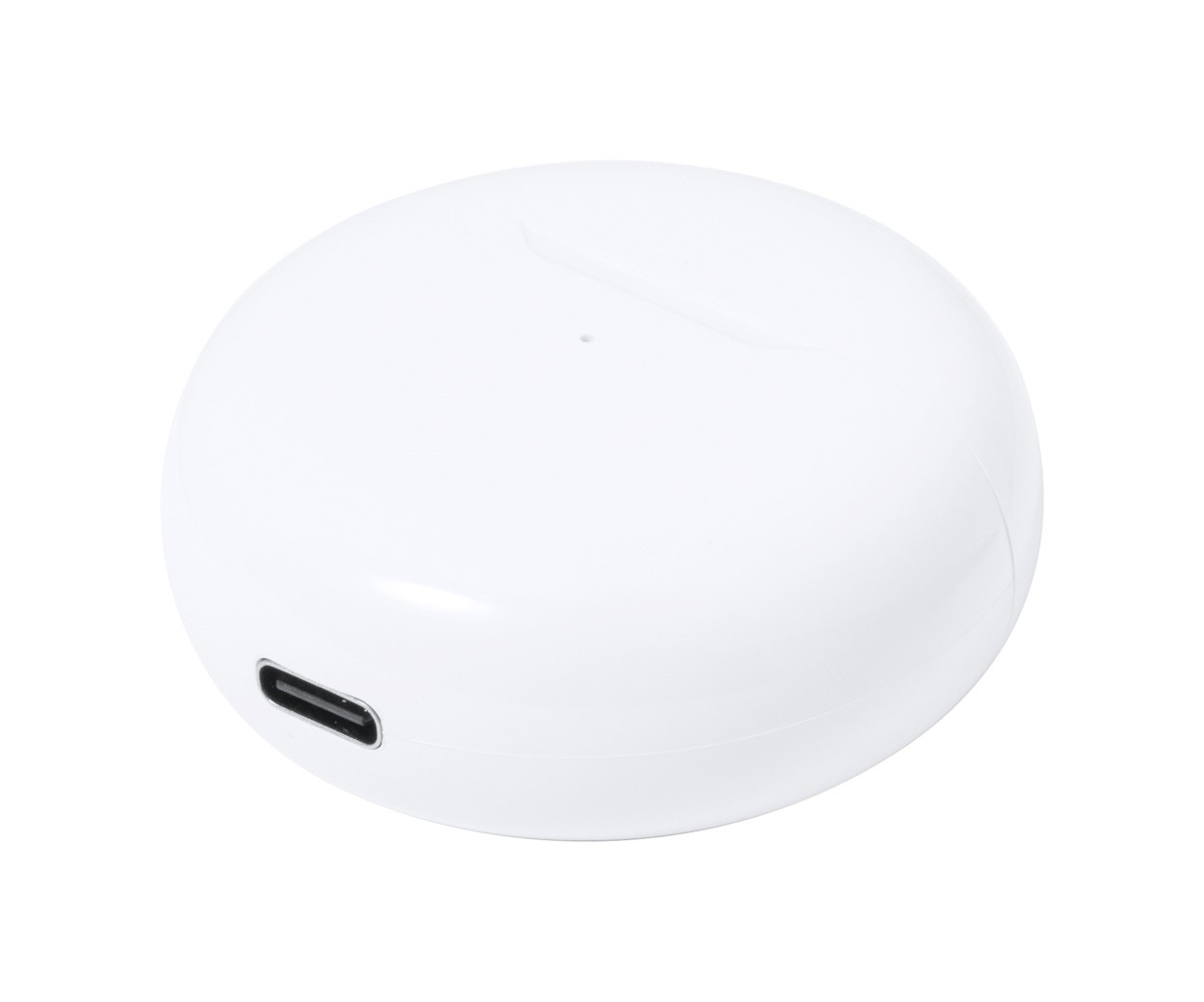 Căști bluetooth, fără fir, din plastic ABS, cu funcție de apel hands-free, în carcasă din plastic pentru încărcător.