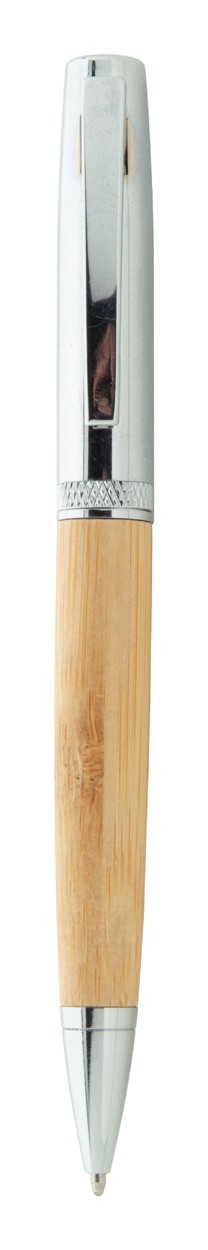 Pix elegant, cu răsucire, din metal, cu butoi din bambus și părți cromate strălucitoare. În carcasă din tub din bambus cu capac cromat. Cu reumplere albastră.