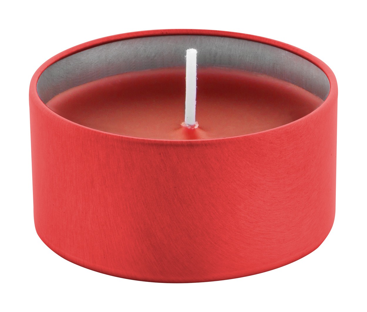 Lumânare parfumată cu aromă de vanilie, în cutie metalică cu capac.