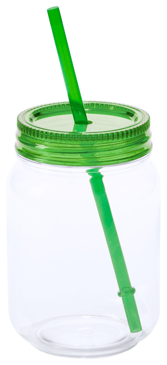 Borcan din plastic transparent cu capac și pai colorat, 600 ml.