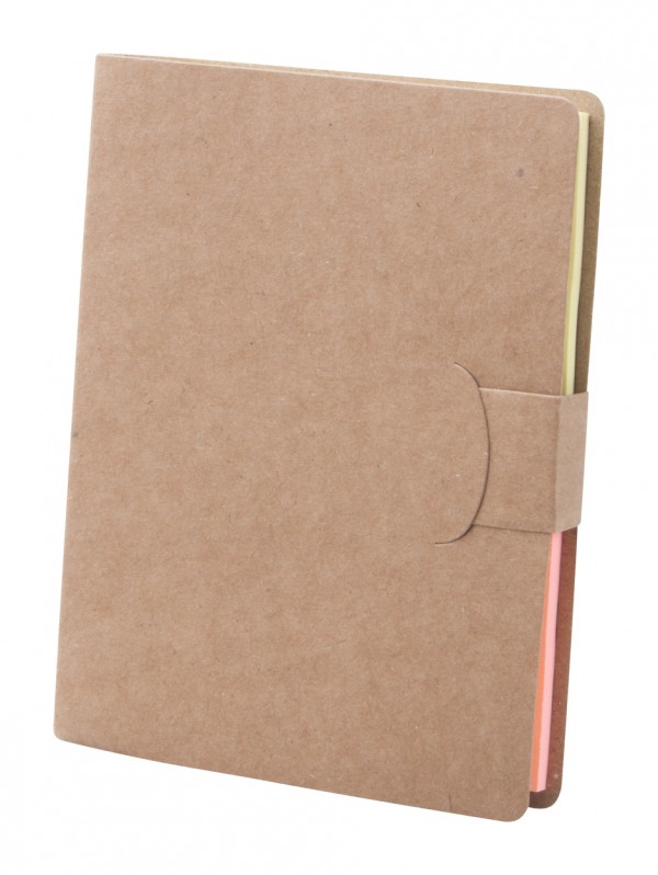 Blocnotes adeziv, cu 50 de note mari, 25 de note medii și 125 de marcatori de pagini (în 5 culori diferite) cu copertă din hârtie reciclată.