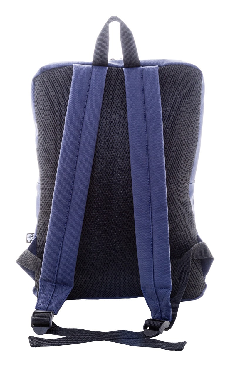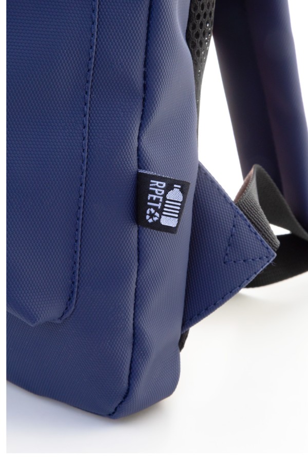 Rucsac pentru laptop slim, RPET impermeabil, cu compartiment pentru laptop cu fermoar (15") și buzunar frontal cu fermoar. Cu spate și bretele căptușite. Poliester 600D RPET acoperit cu PU, cu etichetă RPET distinctă.