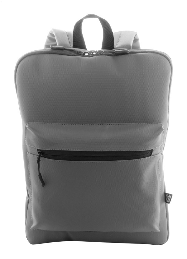 Rucsac pentru laptop slim, RPET impermeabil, cu compartiment pentru laptop cu fermoar (15") și buzunar frontal cu fermoar. Cu spate și bretele căptușite. Poliester 600D RPET acoperit cu PU, cu etichetă RPET distinctă.