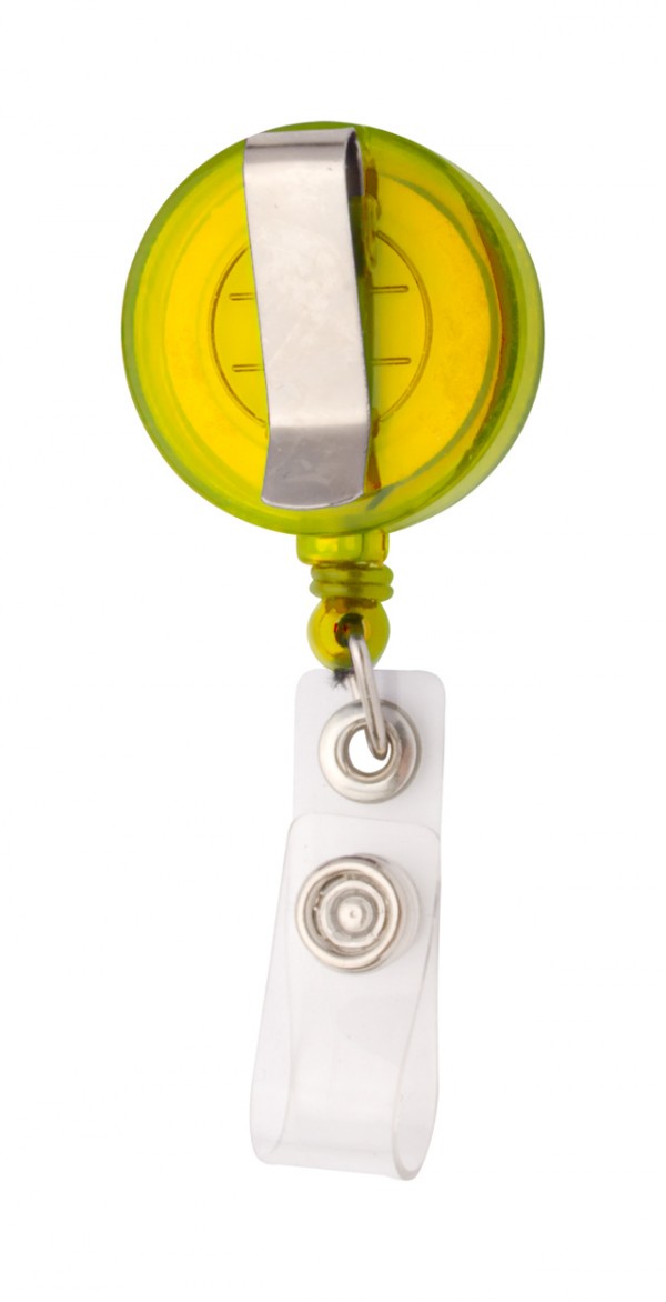 Pass holder telescopic pentru ecusoane, cu capse și clips metalic.