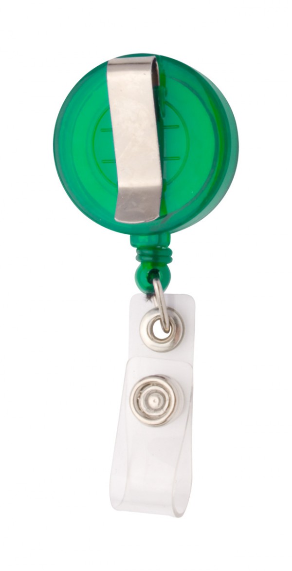 Pass holder telescopic pentru ecusoane, cu capse și clips metalic.