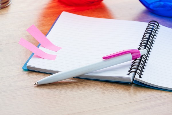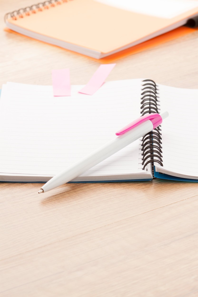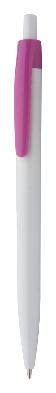 Pix din plastic cu corp alb şi clips colorat. Mină albastră.