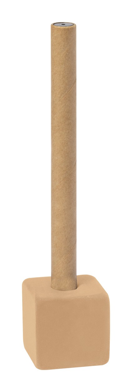 Pix din carton reciclat, fără cerneală, de lungă durată, cu vârf din aliaj metalic, care oxidează hârtia. Acest stilou scrie în mod similar cu un creion și este, de asemenea, șters. Cu suport 2 în 1 în formă de cub și radieră.