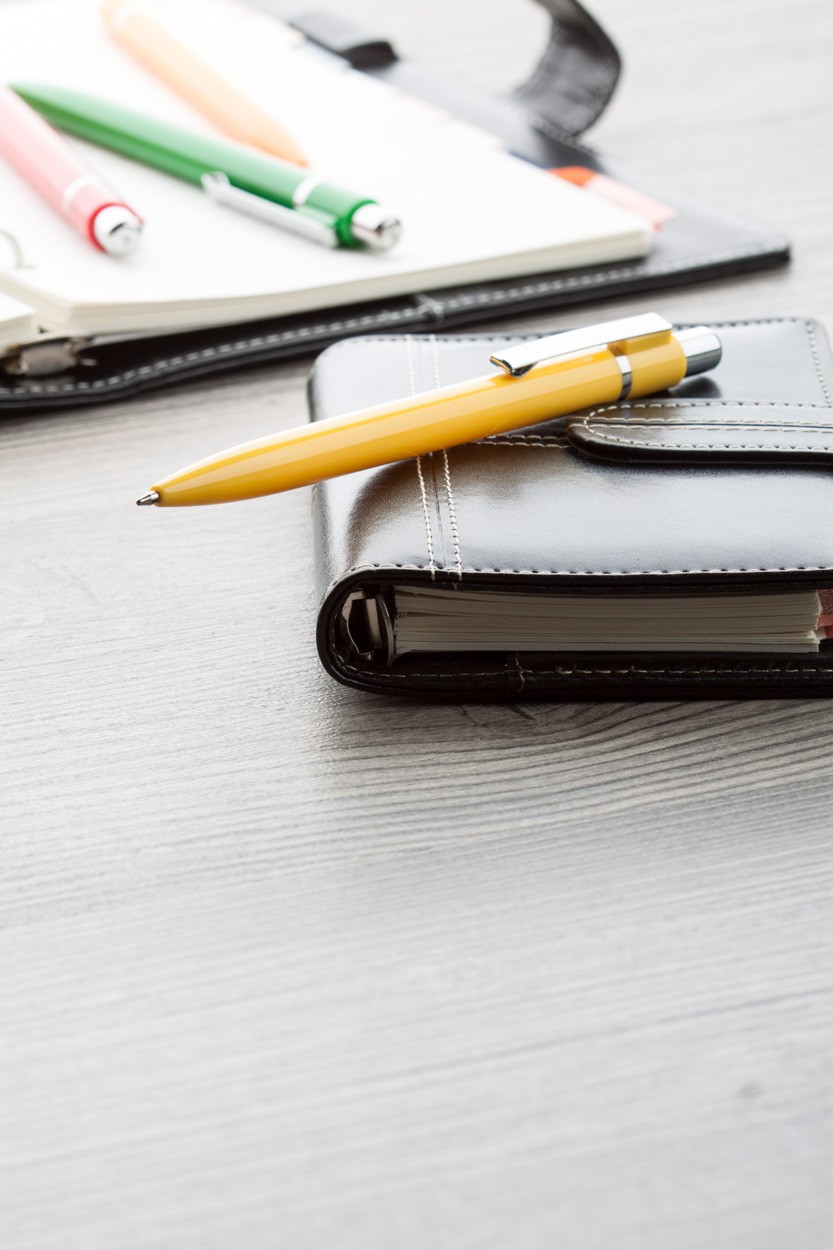 Pix colorat din plastic cu clip metalic şi vârf cromat. Mină albastră.