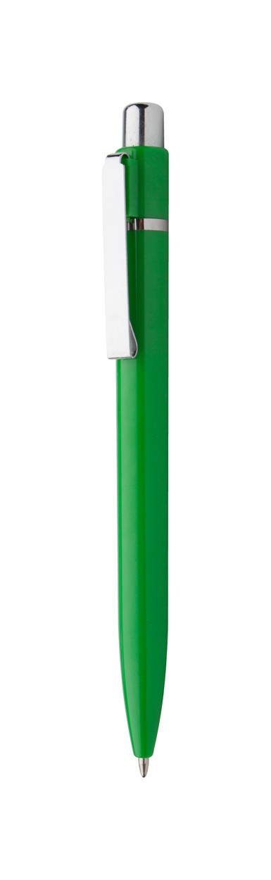 Pix colorat din plastic cu clip metalic şi vârf cromat. Mină albastră.