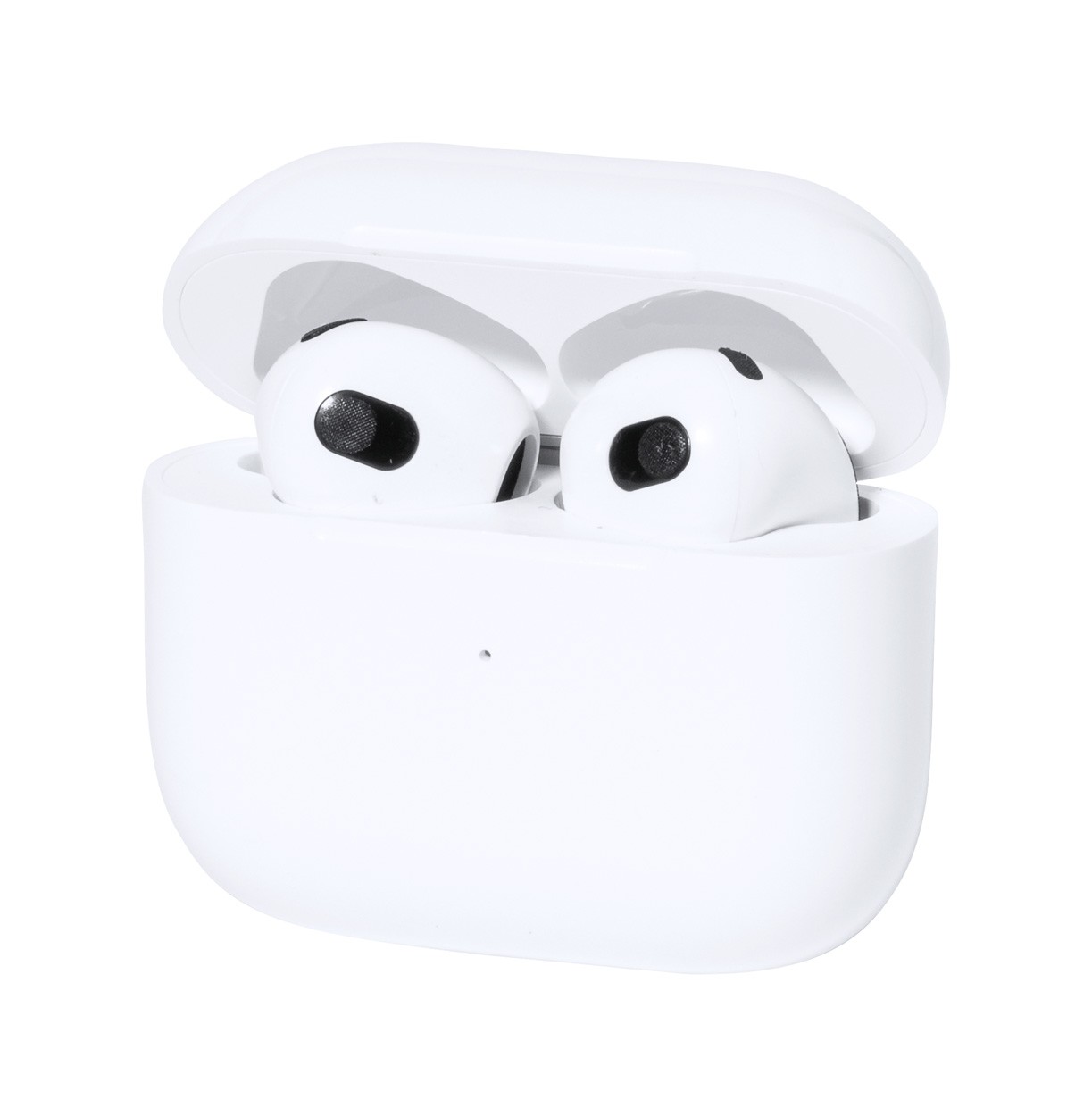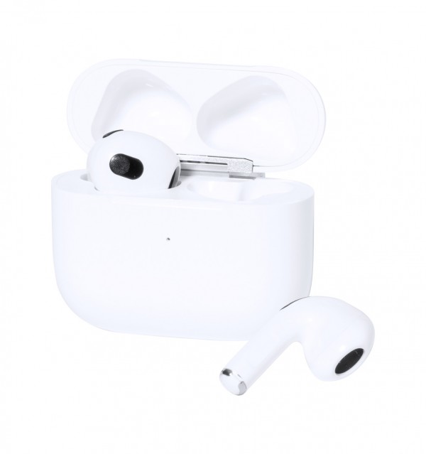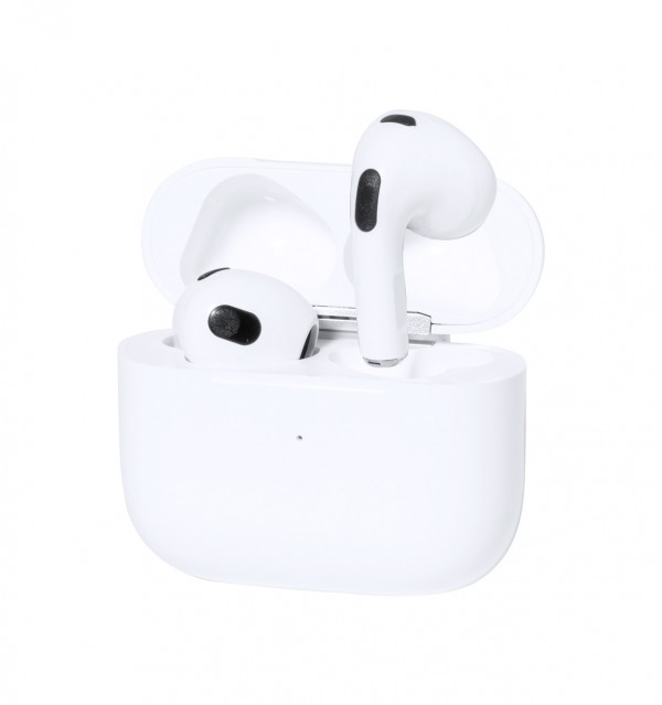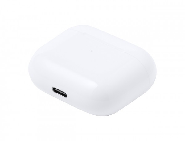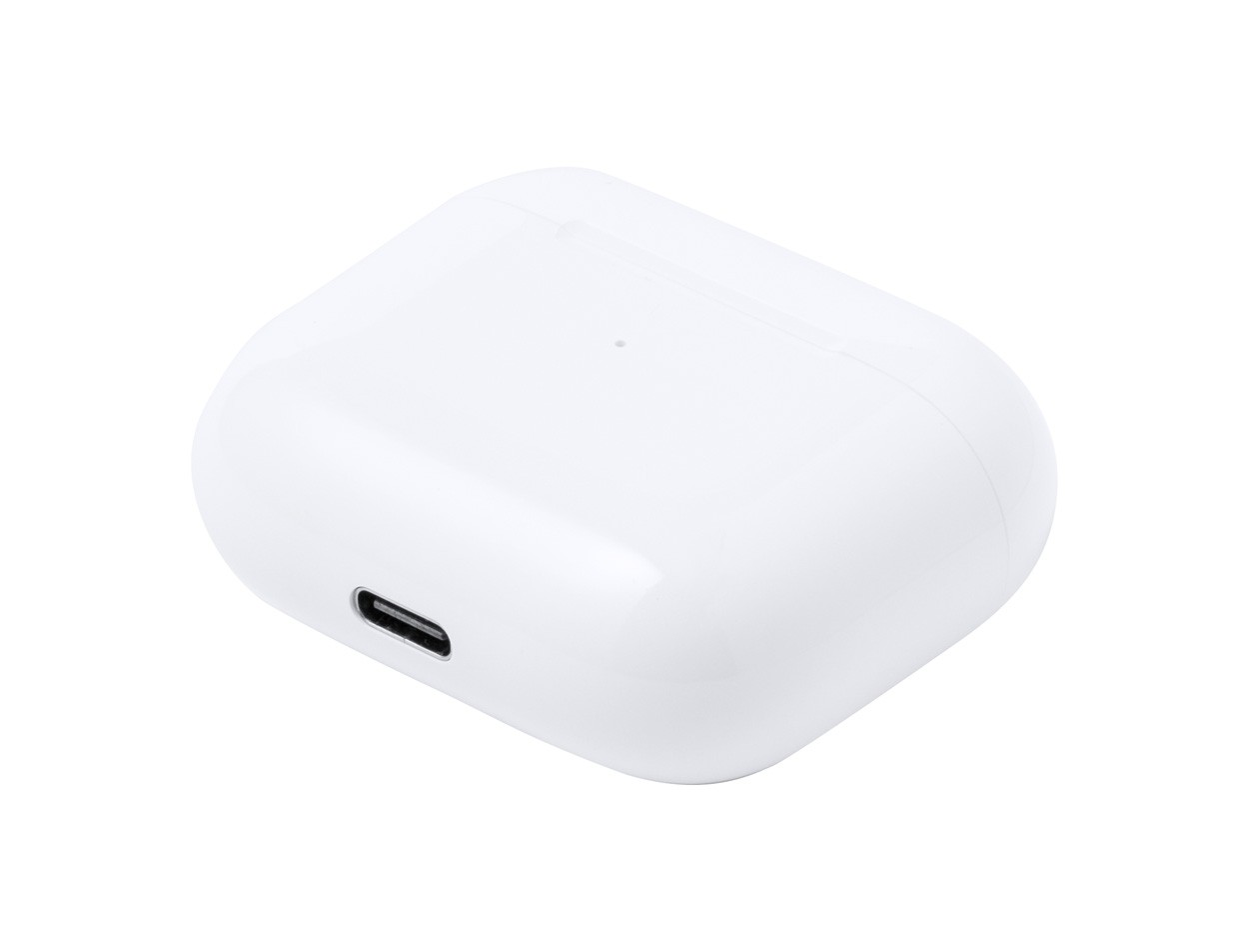 Căști stereo adevărate fără fir (TWS) cu funcție de apelare mâini libere în carcasă de plastic pentru încărcător. Inclusiv cablu de încărcare USB.