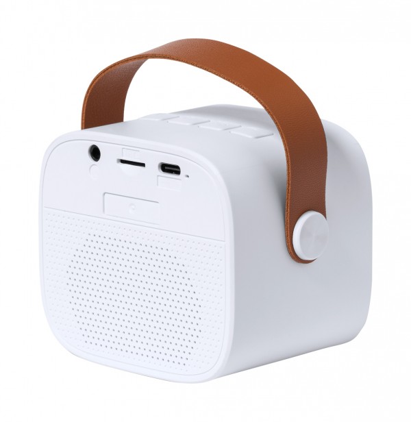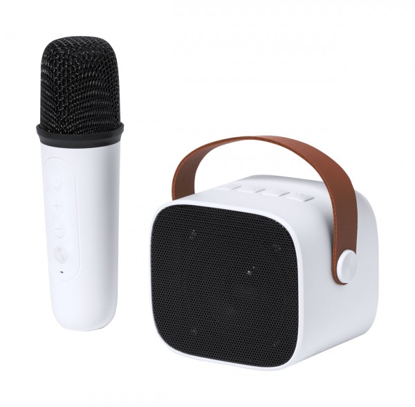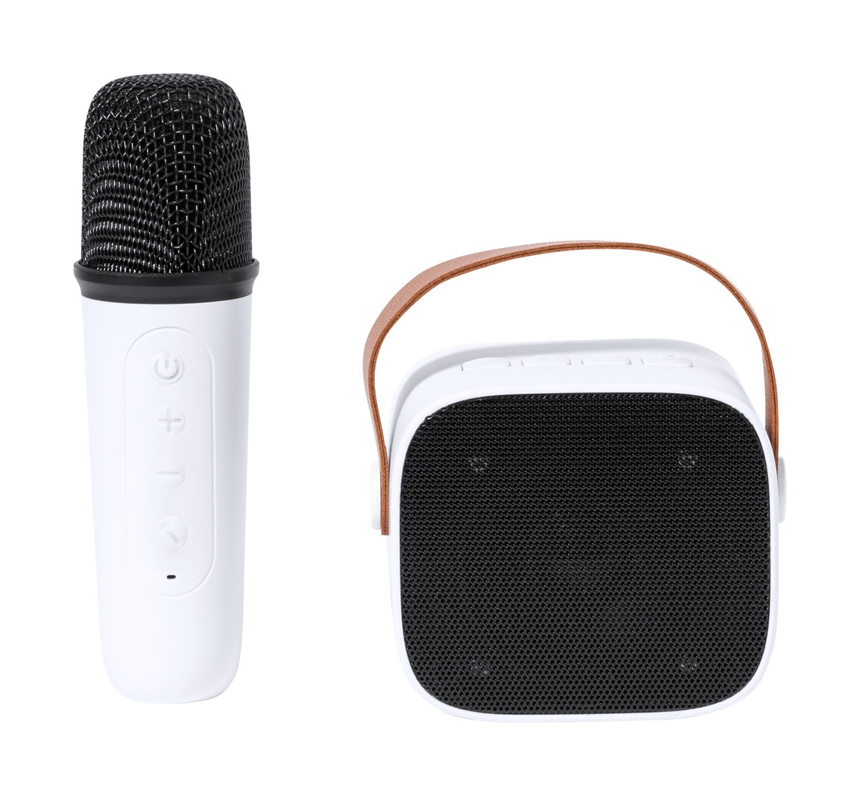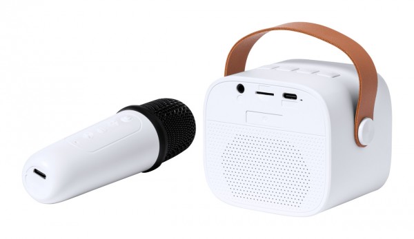 Set karaoke Bluetooth, din plastic, inclusiv microfon și difuzor cu curea de transport din piele PU. Cu baterie reîncărcabilă încorporată (1200 mAh). Inclusiv cablu de încărcare USB.