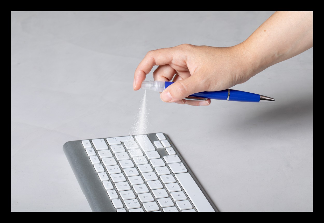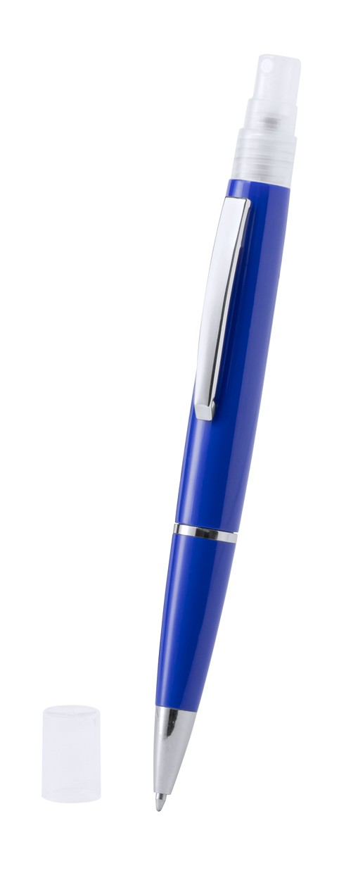Pix din plastic, cu mina albastra si spray de 3 ml. Se livreaza fara dezinfectant.