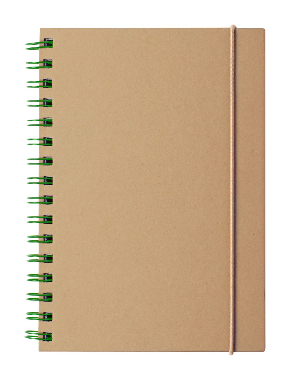Carnețel spiralat A5 cu copertă din carton reciclat, bandă de cauciuc, 80 file dictando.