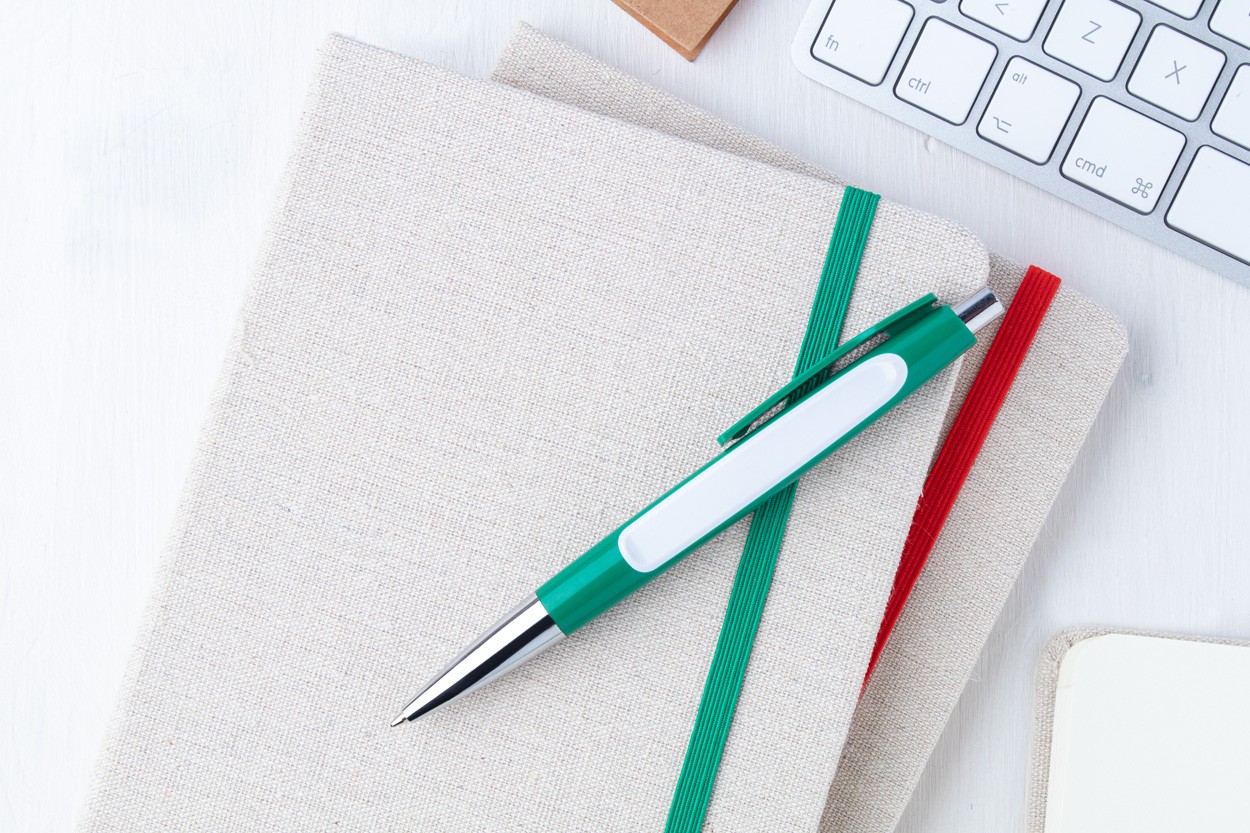 Pix din plastic, cu piese cromate strălucitoare, corp cu suprafață mare pentru imprimare. Mină albastră.