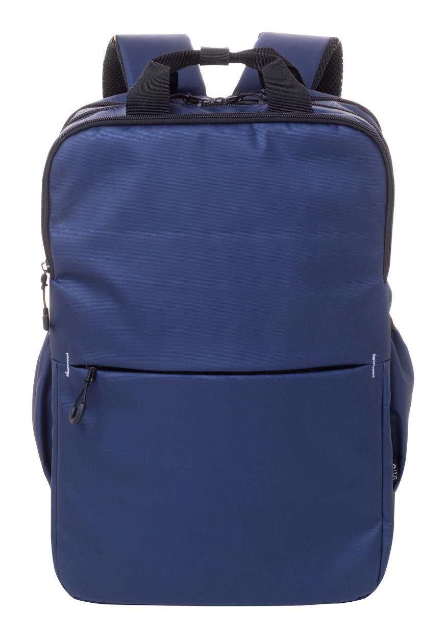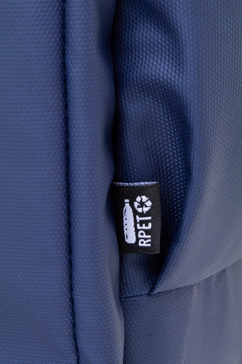 Rucsac RPET impermeabil, cu 2 compartimente cu fermoar, 2 buzunare frontale cu fermoar, buzunare laterale și compartiment căptușit pentru laptop (16"). Cu curea pentru cărucior, spate căptușit și bretele de umăr. Poliester 600D RPET acoperit cu PU, cu etichetă RPET distinctă.