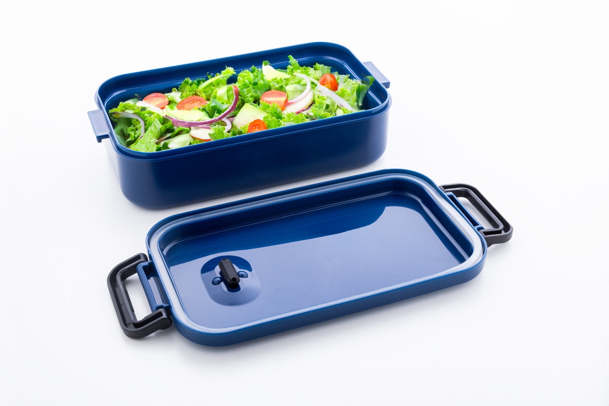 Cutie pentru prânz, din plastic PP cu capac ermetic, supapă din silicon și închidere cu cataramă, 1000 ml.