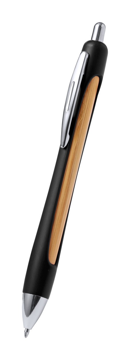 Pix din ABS reciclat și bambus, cu părți cromate și mină albastră.